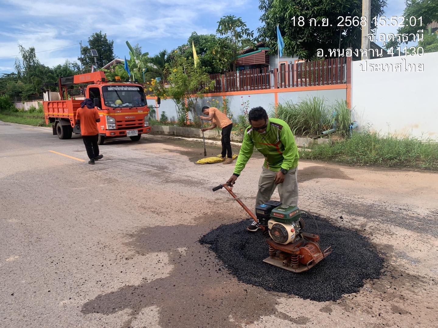 วันพฤหัสบดีที่ 18 กันยายน 2568 นายจิรานุวัฒน์ ศรีภูวงศ์ นายกองค์การบริหารส่วนตำบลหนองหาน มอบหมายให้ นายกุลชาติ คามวรรณ ผู้อำนวยการกองช่าง และเจ้าหน้าที่กองช่าง ลงพื้นที่ซ่อมแซมถนนชำรุด บ้านโพนยอ หมู่ที่ 8 และบ้านพระธาตุสร้างแข้ หมู่ที่ 19 การลงพื้นที่ครั้งนี้ เพื่อแก้ไขและปรับปรุงพื้นที่ดังกล่าว ลดการเกิดอุบัติเหตุ อีกทั้งยังมีประชาชนในพื้นที่มาช่วยซ่อมแซมถนนด้วย