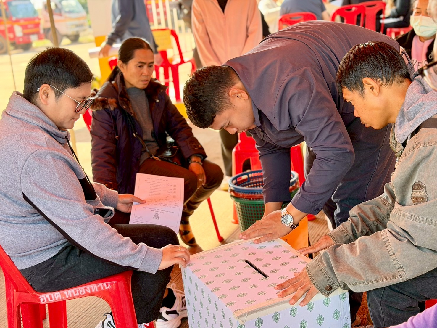 วันเสาร์ที่ 10 มกราคม 2569 นางสาวสิริกร แก้วเจริญ ผู้อำนวยการการเลือกตั้งประจำ อบต.หนองหาน พร้อมคณะกรรมการการเลือกตั้งประจำองค์กรปกครองส่วนท้องถิ่น และเจ้าหน้าที่องค์การบริหารส่วนตำบลหนองหาน ส่งมอบหีบบัตรเลือกตั้ง วัสดุอุปกรณ์ และแบบพิมพ์ ให้กับคณะกรรมการประจำหน่วยเลือกตั้ง (กปน.) และเจ้าหน้าที่รักษาความปลอดภัยประจำหน่วยเลือกตั้ง (รปภ.) ในการเลือกตั้งสมาชิกสภาองค์การบริหารส่วนตำบลหนองหาน ทั้ง 18 เขตเลือกตั้ง ณ หอประชุมองค์การบริหารส่วนตำบลหนองหาน อำเภอหนองหาน จังหวัดอุดรธานี