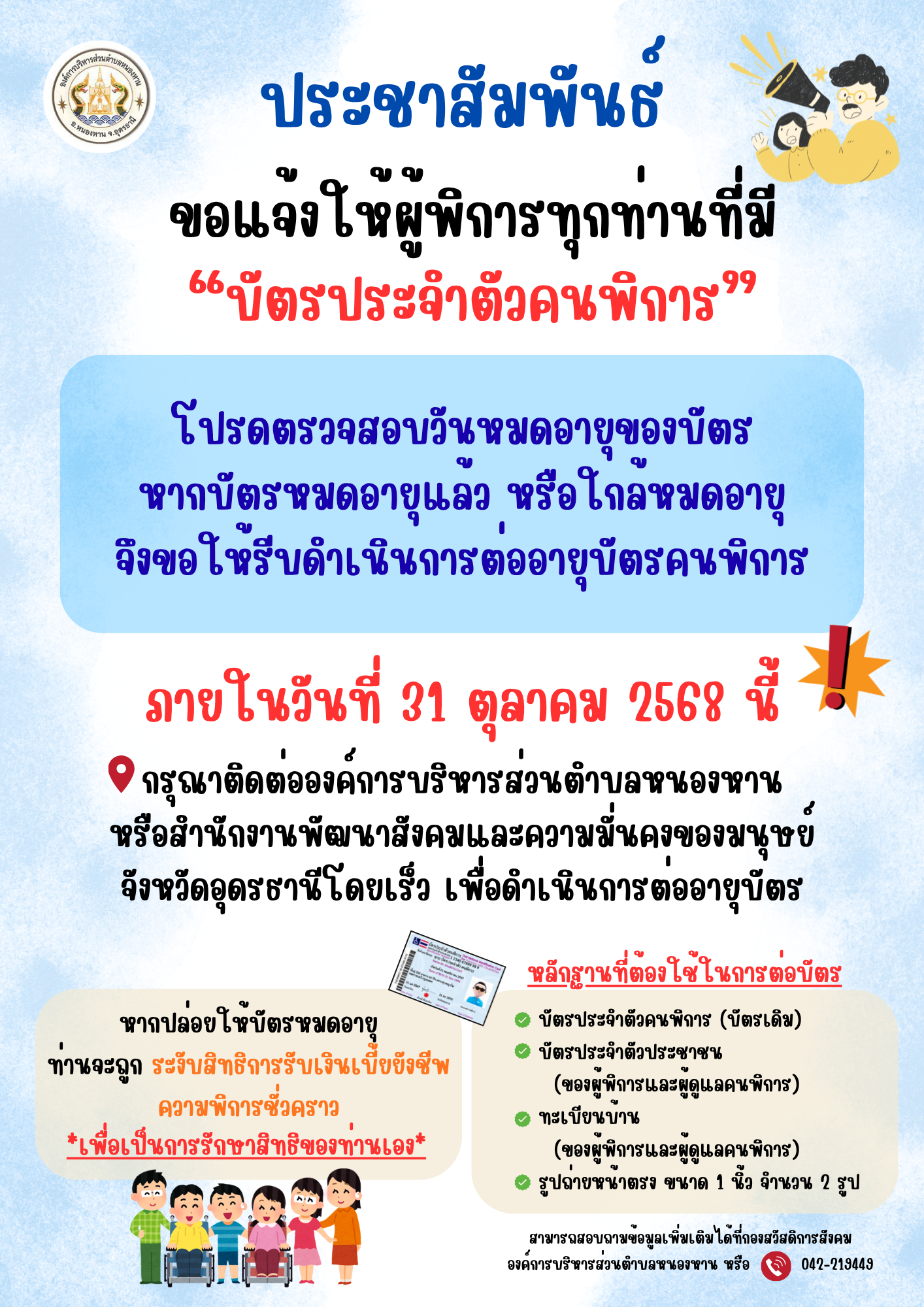 ประชาสัมพันธ์ให้ผู้พิการตรวจสอบบัตรประจำตัวคนพิการ