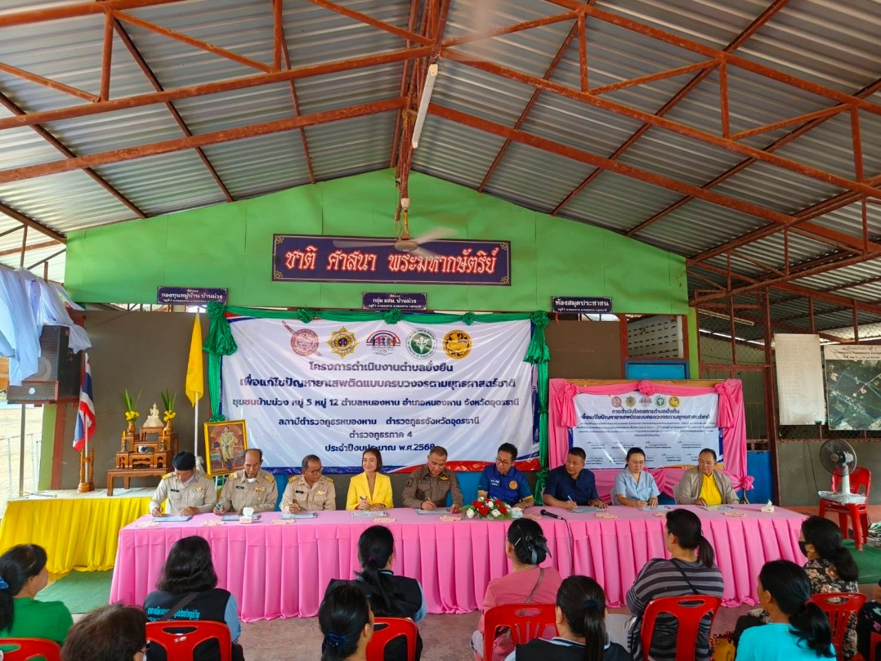 นายสุระพล แจ้งดี รองนายกองค์การบริหารส่วนตำบลหนองหาน และนายสวาท ศรีภิรมย์ เลขานุการนายกองค์การบริหารส่วนตำบลหนองหาน เข้าร่วมโครงการดำเนินงานตำบลยั่งยืนเพื่อแก้ไขปัญหายาเสพติดแบบครบวงจรตามยุทธศาสตร์ชาติ ร่วมกับอำเภอหนองหาน สถานีตำรวจภูธรอำเภอหนองหาน สาธารณสุขอำเภอหนองหาน โรงเรียนบ้านม่วงประชาบำรุง และผู้นำชุมชน ณ ศาลาประชาคมหมู่บ้าน บ้านม่วง หมู่ที่ 5