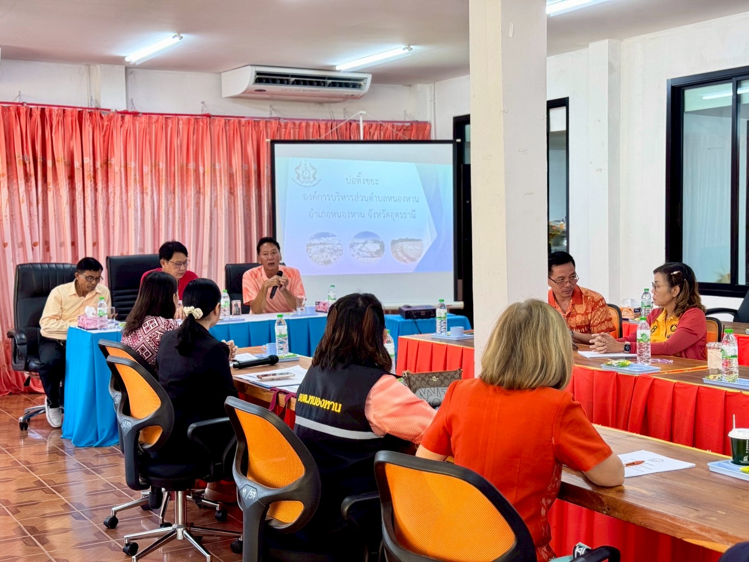 วันพฤหัสบดีที่ 18 กันยายน 2568 นายจิรานุวัฒน์ ศรีภูวงศ์ นายกองค์การบริหารส่วนตำบลหนองหาน พร้อมคณะผู้บริหาร ข้าราชการ สมาชิกสภา อบต.หนองหานที่เกี่ยวข้อง เจ้าหน้าที่อบต.หนองหาน และตัวแทนจาก อบต.โพนงาม ร่วมประชุมหารือเรื่องทิ้งขยะมูลฝอย การประชุมครั้งนี้ เพื่อให้การบริหารจัดการขยะเป็นไปด้วยความเรียบร้อยและไม่มีปัญหาในเรื่องของขยะมูลฝอยล้นบ่อ